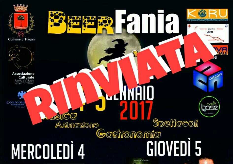 Subisce una battuta d’arresto a Pagani stasera per il maltempo la manifestazione dedicata alla birra e all’arrivo della Befana.