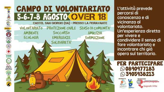 Le organizzazioni di volontariato “Nuove Prospettive” e “Segnali di Vita” che hanno sede in Roccapiemonte in provincia di Salerno, hanno dato il via alle iscrizioni al Campo di Volontariato edizione 2019 che si terrà a Torello una piccola frazione di Castel San Giorgio situata nell’entroterra della cittadina. Il Campo si svolgerà nei giorni 5-6-7-8 agosto grazie al sostegno di Sodalis, Centro Servizi del Volontariato e la partecipazione è gratuita.