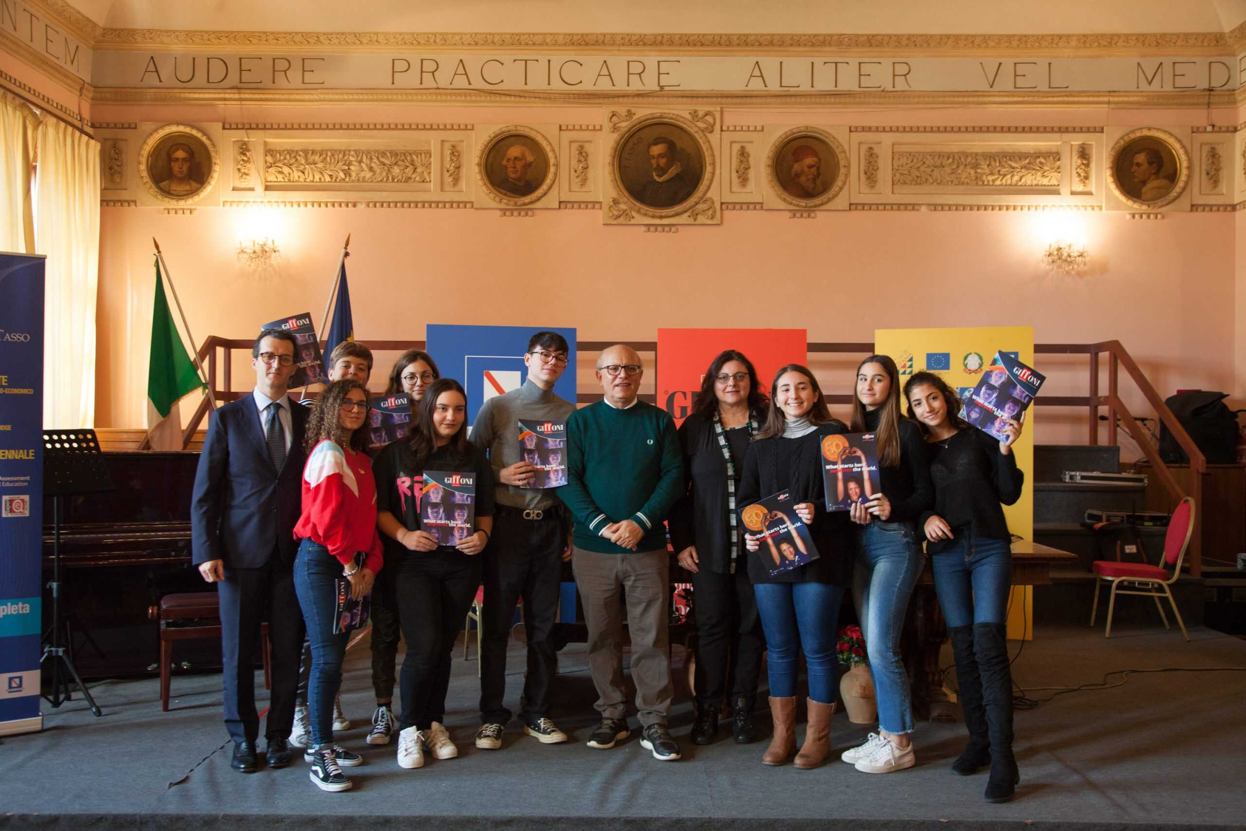 Accompagnato dagli applausi dei compagni di istituto ha poi preso la parola Mario Falcone, studente del Tasso e tra i 50 ambassador d’Italia chiamati a rappresentare Giffoni nel mondo: “Frequento il festival dall’età di 12 anni e i suoi film mi hanno sempre accompagnato nel mio percorso di crescita – ha raccontato – Sono felice di poter trasferire il mio impegno e la mia passione in un progetto così importante”.