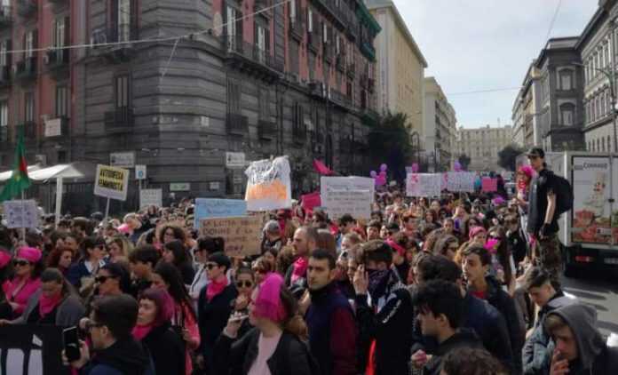 Corteo organizzato anche Napoli dalle attiviste di #NonUnaDiMeno che come in altre città italiane hanno partecipato allo “Sciopero Globale Transfemminista dell’8 marzo”. Durante la manifestazione, alla quale hanno partecipato centinaia di persone, sono state ricordate tutte le vittime di violenza e soprattutto le due donne uccise a Napoli solo nell’ultima settimana: Fortuna Belisario ammazzata di botte da suo marito durante una lite ieri a Miano e Norina Mattuozzo, uccisa con tre colpi di pistola da suo marito sabato scorso a Melito. Una manifestante portava in mano un cartello con foto di numerosi uomini con la scritta “Non uno di piu”. «Queste sono le facce dei nostri assassini – ha spiegato – degli stalker, di violentatori e di personaggi pubblici e giornalisti che senza vergogna si lasciano andare a dichiarazioni sessiste».