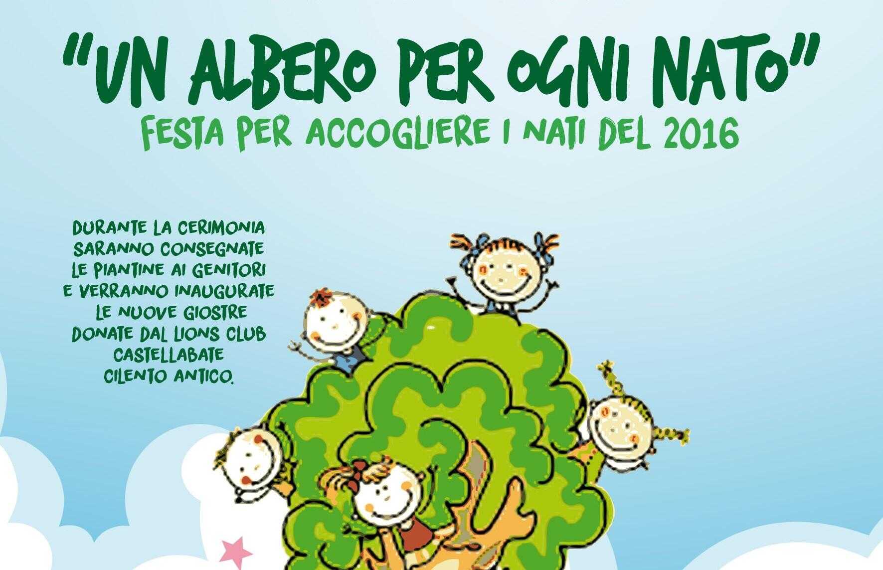 Durante l’evento sono stati accolti ufficialmente nella comunità i 72 nati del 2016. Un pomeriggio di festa per genitori e istituzioni, durante il quale, oltre alla consegna delle alberelli donati dal Comune e dei libretti di risparmio intestati al bambino offerti dalla BCC dei Comuni Cilentani, sono state anche inaugurate le nuove giostre per disabili, acquistate dal Lions Club Castellabate Cilento Antico, alla memoria della Lions Giovanna La Cava Gattola, che arricchiranno i giochi già presenti nel parco della Villa Matarazzo, gestito dal Comune.
