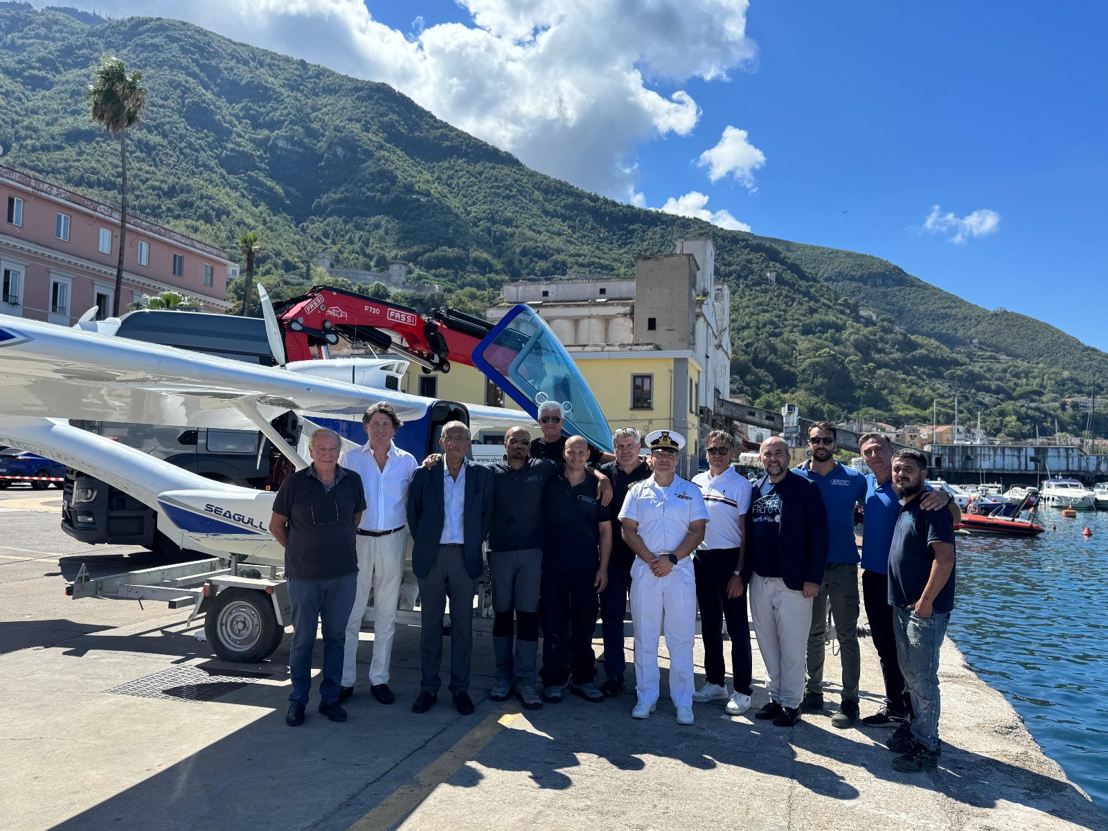 Le attività di test sono state rese possibili grazie alle autorizzazioni della Capitaneria di Porto di Castellammare di Stabia, rappresentata dal Comandante C.F. (CP) Andrea Pellegrino, e dell’Autorità di Sistema Portuale del Mar Tirreno Centrale. I test e le operations, supervisionati dal C.C. (CP) Luca Giotta della Capitaneria di Porto di Castellammare di Stabia, sono stati coordinati da Novotech con le società Yes Automation & Maintenance Srl e Trasporti Iannario Srl. Le manovre in acqua sono statesupervisionate da Stabia Main Port. Il Seagull, una volta operativo, sarà equipaggiato con il sistema FBEYE sviluppato dalla società spaziale ALI S.p.A. – Gruppo Space Factory in partnership con Euro.soft Srl e TopView Srl per l’individuazione del punto di innesco degli incendi. Il progetto FBEYE è stato finanziato dall’ESA (Agenzia Spaziale Europea) con fondi ASI (Agenzia Spaziale italiana) nell’ambito del programma ARTES 4.0. La Città di Castellammare di Stabia vanta una lunga tradizione nel settore aerospaziale, a partire dalla presenza di AVIS (già Avionica Stabiese), eccellenza nazionale nel primo dopoguerra per la costruzione di idrovolanti di nuova generazione. Nel 2012 la Città ha ospitato alla Reggia di Quisisana