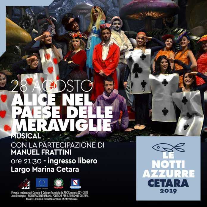 Mercoledì 28 agosto, in largo Marina, andrá in scena, il musical “Alice nel paese delle meraviglie”. Dalle 21,30, Un mondo fantastico si spalancherà agli occhi dei tanti adulti e bambini che seguiranno ALICE, nel suo straordinario viaggio.