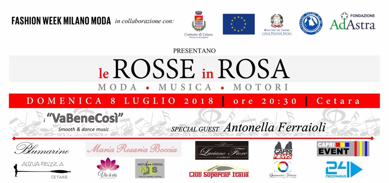 Donne e motori, bellezza e passione, forza e grinta, eleganza e fascino. Binomi inscindibili, efficaci, intramontabili. Che in una notte magica, sotto le stelle di Cetara , con il mare che fa da sfondo e la bellezza femminile che lo incornicia, si fa spettacolo, evento imperdibile. IL ROSSO & IL ROSA, evento patrocinato dal comune di Cetara , andrà in scena l’8 luglio nell’ amena cittadina del salernitano. Abiti da sogno, sfileranno per strada, accompagnati da musica dal vivo, accarezzando con leggiadra eleganza diversi modelli di Ferrari di ogni epoca, per sottolineare il legame sempre più forte che negli anni si è instaurato tra donna e automobili. Non solo semplici spettatrici e ammiratrici. Le donne oggi progettano, costruiscono, guidano auto. Non sono più le capricciose creature senza cervello di qualche film degli anni ’60. Artefici del loro destino, grintose, volitive. Eppure delicate come la seta fluente, emozionanti come le note di un violino, accattivanti come le linee di una fuoriserie.