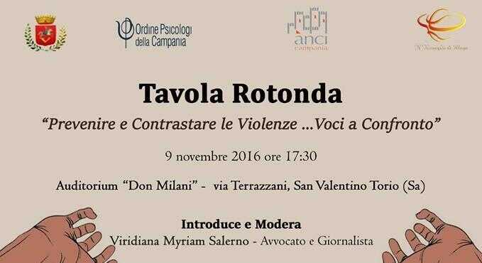 Importante iniziativa per prevenire e contrastare ogni forma di violenza. Si terrà il 9 novembre, presso l’Auditorium “Don Milani” di San Valentino Torio, la tavola rotonda con vari operatori sociali che discuteranno di iniziative da attuare per contrastare le violenze di ogni genere. L’incontro, patrocinatao dal Comune ed organizzato in stretta collaborazione con l’Ordine degli Psicologi della Regione Campania, vedrà la presenza dell’assessore regionale alle pari opportunità Chiara Marciani.
