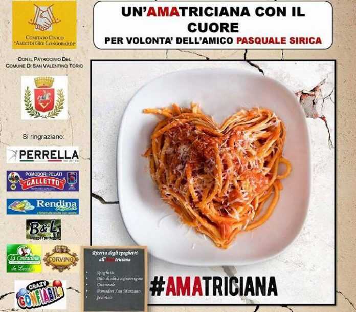 Un sabato sera dedicato alla beneficenza. Il giorno 8 ottobre, nella Villa Comunale di San Valentino Torio, si terrà una bella iniziativa con duplice finalità: ricordare Pasquale Sirica e fare solidarietà per gli sfollati di Amatrice, Accumoli e Arquata del Tronto. “Venite quindi tutti in Villa Comunale per mangiare un piatto di Amatriciana e passare una serata in allegria – ha dichiarato il primo cittadino Strianese – Tutto il ricavato andrà in beneficenza per i nostri connazionali che vivono un momento difficile, cosi come già fatto nella prima serata del Pizza Festival 2016. Un ringraziamento per la bellissima iniziativa va agli amici del Comitato Civico Amici di Gigi Longobardi”.