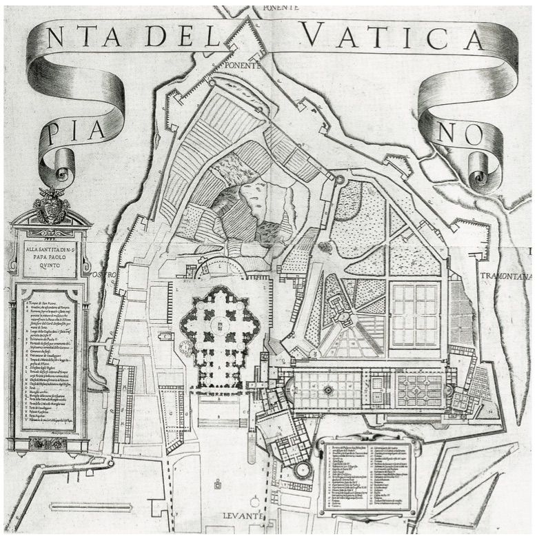 Pianta del Vaticano, incisione su rame di Martino Ferrabosco, edito dalla Reverenda Camera Apostolica, 1684