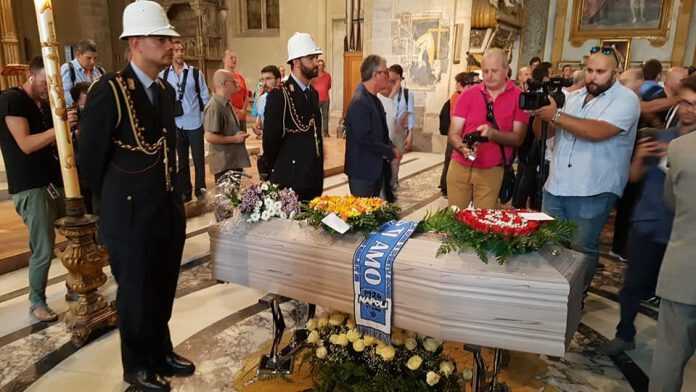 Accompagnato da un applauso, il più lungo e sentito tra quelli che si sono susseguiti dall’inizio alla fine delle esequie napoletane celebrate nella Basilica di Santa Chiara, nel cuore di Napoli, il feretro dello scrittore ha attraversato la navata della basilica mentre i presenti invocavano il suo nome a gran voce. Sulla bara qualcuno ha adagiato una sciarpa della squadra partenopea. Concluso il rito nella basilica è stata diffusa la canzone napoletana “Era De’ Maggio” molto amata dallo scrittore, basata sui versi di una poesia del 1885 di Salvatore Di Giacomo. “Il mare nei suoi occhi e il Vesuvio nel suo cuore. Ciao Luciano”. Così padre Giovanni Paolo Bianco, parroco della basilica di Santa Chiara di Napoli, durante la celebrazione dei funerali di Luciano De Cresenzo, ha concluso la sua omelia per descrivere il regista, scrittore e attore napoletano scomparso a Roma giovedì scorso all’età di 90 anni.