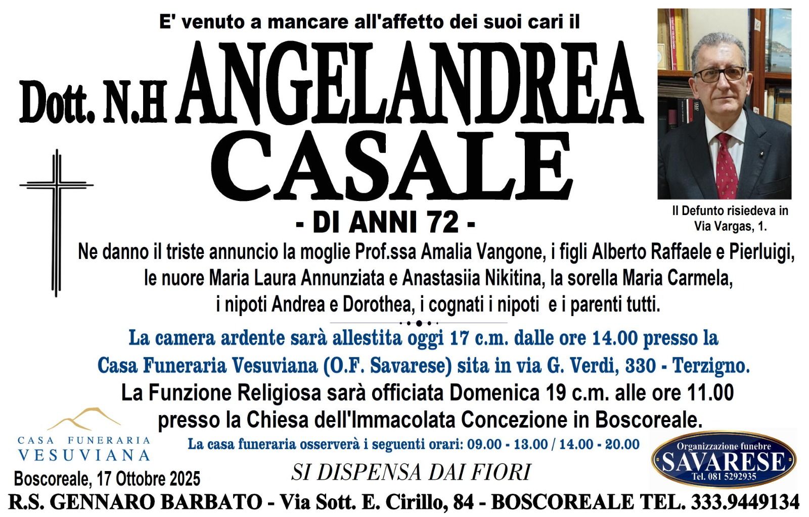 Con la morte di Angelandrea Casale, scompare una delle voci più autorevoli della ricerca storica vesuviana, ma resta viva la sua eredità intellettuale e morale, destinata a continuare attraverso le sue opere e l’esempio del suo instancabile impegno civile.