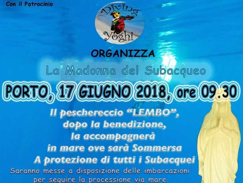 Una statua raffigurante la Madonna sarà collocata in fondo al mare, al largo del porto turistico di Agropoli. Il Comune di Agropoli ha fornito il patrocinio morale alla Scuola Subacquea Diving Yoghi che si occuperà dell’operazione, in programma domenica 17 giugno. La statua, in pietra e marmo, di un’altezza pari a circa 1,80 metri, sarà collocata a circa 150 metri di distanza dalla caletta di San Francesco e a circa 16 metri di profondità. La statua, che sarà denominata “la Madonna del subacqueo”, è stata donata da un socio dell’associazione allo scopo di fare in modo che la beata Vergine possa dagli abissi proteggere tutti coloro che si recano in mare.