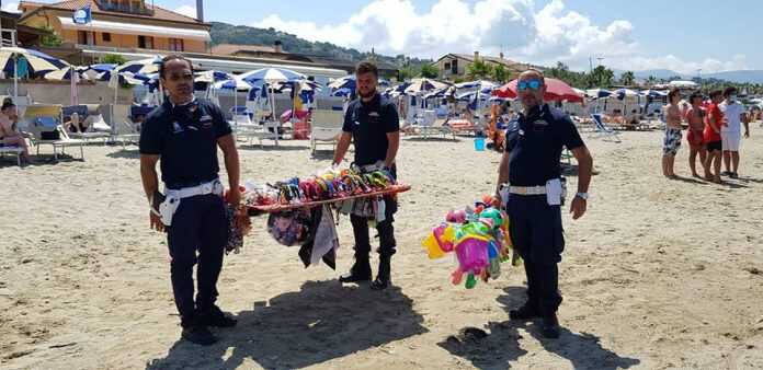 Pugno duro contro il commercio abusivo. Nell’ambito del progetto “Spiagge sicure-Estate 2020”, teso ai controlli legati all’emergenza sanitaria e al contrasto del commercio abusivo, ieri mattina la Polizia municipale ha effettuato, dopo quelli della scorsa settimana, un nuovo sequestro di merce che veniva venduta illecitamente sui nostri arenili. La sicurezza e la legalità prima di tutto.