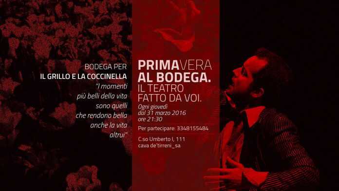 Momenti di svago, associati alla solidarietà. Dal 31 marzo prossimo, al Bodega Wine Bar del borgo Scacciaventi a Cava de’ Tirreni, prenderà il via la rassegna “PrimaVera al Bodega. Il teatro fatto da voi”.