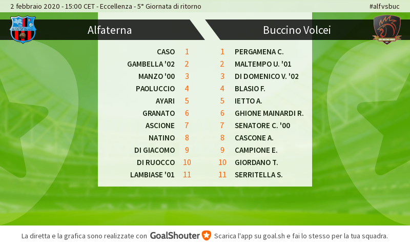 Caso tra i pali al posto dello squalificato Benevento, Di Giacomo al centro dell’attacco al rientro dalla squalifica e soprattutto rivoluzione under, con l’utilizzo dal primo minuto di Gambella, Manzo e Lambiase, che rispetto alla formazione di partenza della precedente uscita vanno a sostituire Bardini, Petrosino e Scannapieco oltre che da Imperato, che a Castel San Giorgio fungeva forzatamente da baby aggiuntivo. Sono queste le novità che Sellitti presenta al cospetto del Buccino. Taccuino aperto da un paio di tentativi della squadra di Pietropinto. Caso neutralizza il tentativo di Blasio. Murato il tentativo di Campione. Ancora Caso attento sul tentativo bis di Blasio, che muovendosi alla perfezione è l’unico a creare grattacapi alla truppa di Sellitti. Risultato sbloccato al 35′. Ghione Mainardi entra fallosamente in area su Di Ruocco, è rigore, trasformato in gol del vantaggio proprio da Di Ruocco. Chance per il 2-0, capita al 43′. Pergamena però si oppone a Di Giacomo. Ripresa, ci prova subito Paoluccio, senza centrare il bersaglio a causa di una deviazione avversaria. Pietropinto va col cambio doppio, l’under Pezzella in porta rileva l’esperto Pergamena mentre più avanti va a piazzarsi La Grutta al posto dell’under nocerino Senatore. Risponde Sellitti con Bardini al posto di Lambiase. Ci provano Di Domenico e proprio La Grutta. Poi Troiano dà il cambio a Blasio. Termina fuori la nuova conclusione di Di Giacomo. Alla mezz’ora il nocerino e fresco ex Tipaldi entra al posto di Giordano. Tocca a Campione portare pericolo verso Caso. Nuova sostituzione di Sellitti, in avanti ecco l’esperto Mastrojanni al posto di Di Giacomo. Ecco tornare protagonista Di Ruocco, tiro fuori. Così come va fuori il nuovo tentativo di Campione. Altri tentativi da una parte e dall’altra, vedi Paoluccio e Tipaldi. A furia di provarci però il Buccino beffa l’Alfaterna e forse la condanna al peggio. Campione pareggia, sugli sviluppi di un calcio d’angolo battuto da Tipaldi. Verso lo scadere, l’amarezza diventa piena e pesante, Sandrino Serritella regala i tre punti al Buccino e buonanotte ai suonatori, diventano note per il taccuino Califano per Manzo ed Ola per Campione, oltre all’ennesima chance capitata a Troiano.