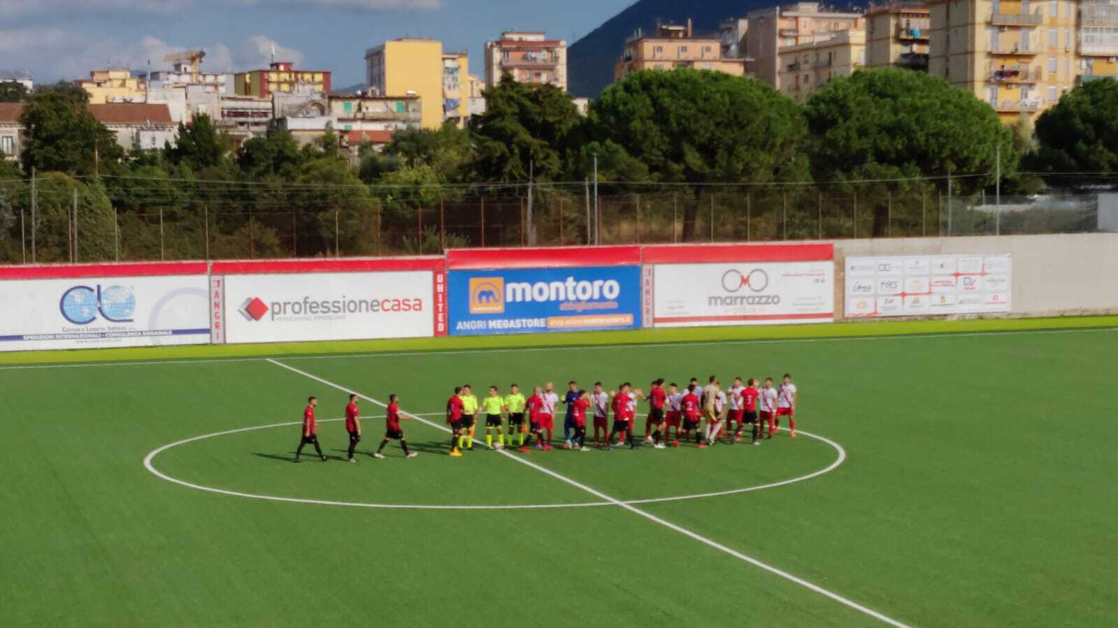 Al Novi di Angri, la squadra di De Cesare ottiene la terza vittoria in quattro partite. Non è stato un derby bello, agonistico e tattico più che altro, con recriminazione persino. De Cesare deve fare a meno di Natiello – si teme stiramento – nel 4-3-3 di partenza fa giocare dal primo minuto il ’99 Mirko Somma. Un altro Somma, l’ex Mario che gioca nella difesa a tre dell’Alfaterna, commette fallo da rigore su Liguori, l’arbitro non ha esitazioni, l’Alfaterna protesta, dal dischetto fa centro Barbarisi. L’azione era nata con Gennaro Ferrara, al rientro sul terreno di gioco dopo botta, servito da Faggiano e in grado di servire puntualmente Liguori, elemento in momento personale così bello da renderlo sprecato in categoria.