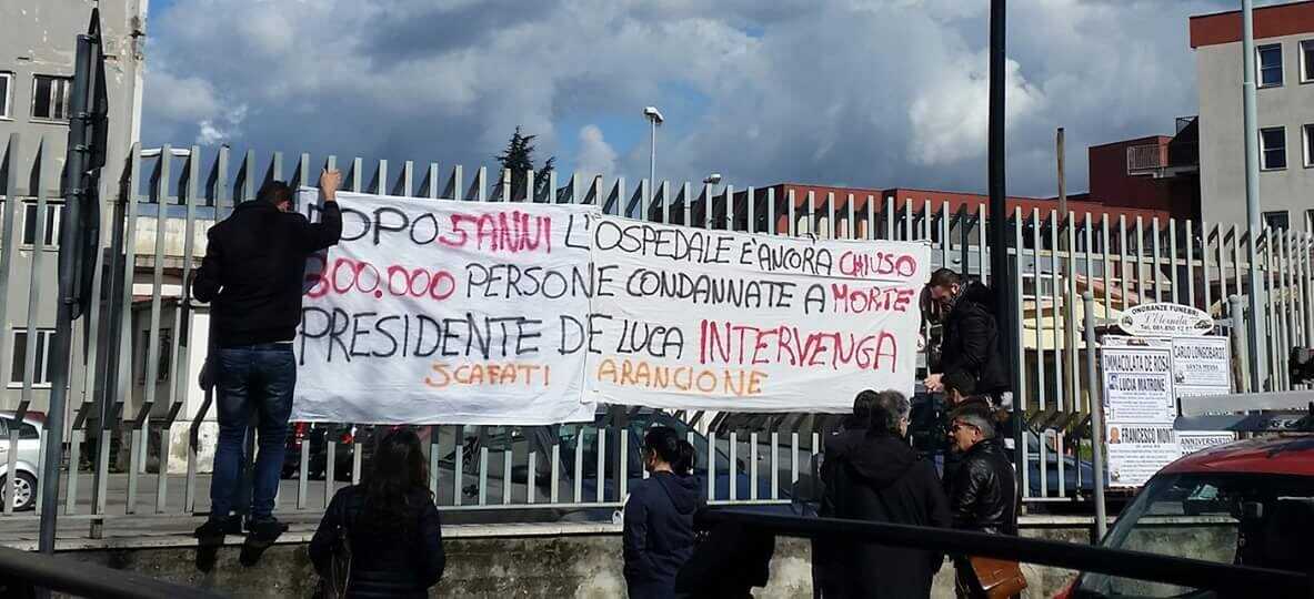 “Dopo 5 anni l’ospedale è ancora chiuso. 300.000 persone condannate a morte. Presidente De Luca intervenga”. Questo lo striscione esposto poche ore fa dinanzi l’ospedale “Mauro Scarlato” di Scafati indirizzato al presidente della Regione Campania affinché vi sia un concreto intervento per restituire ai cittadini una struttura sanitaria autonoma e funzionante.