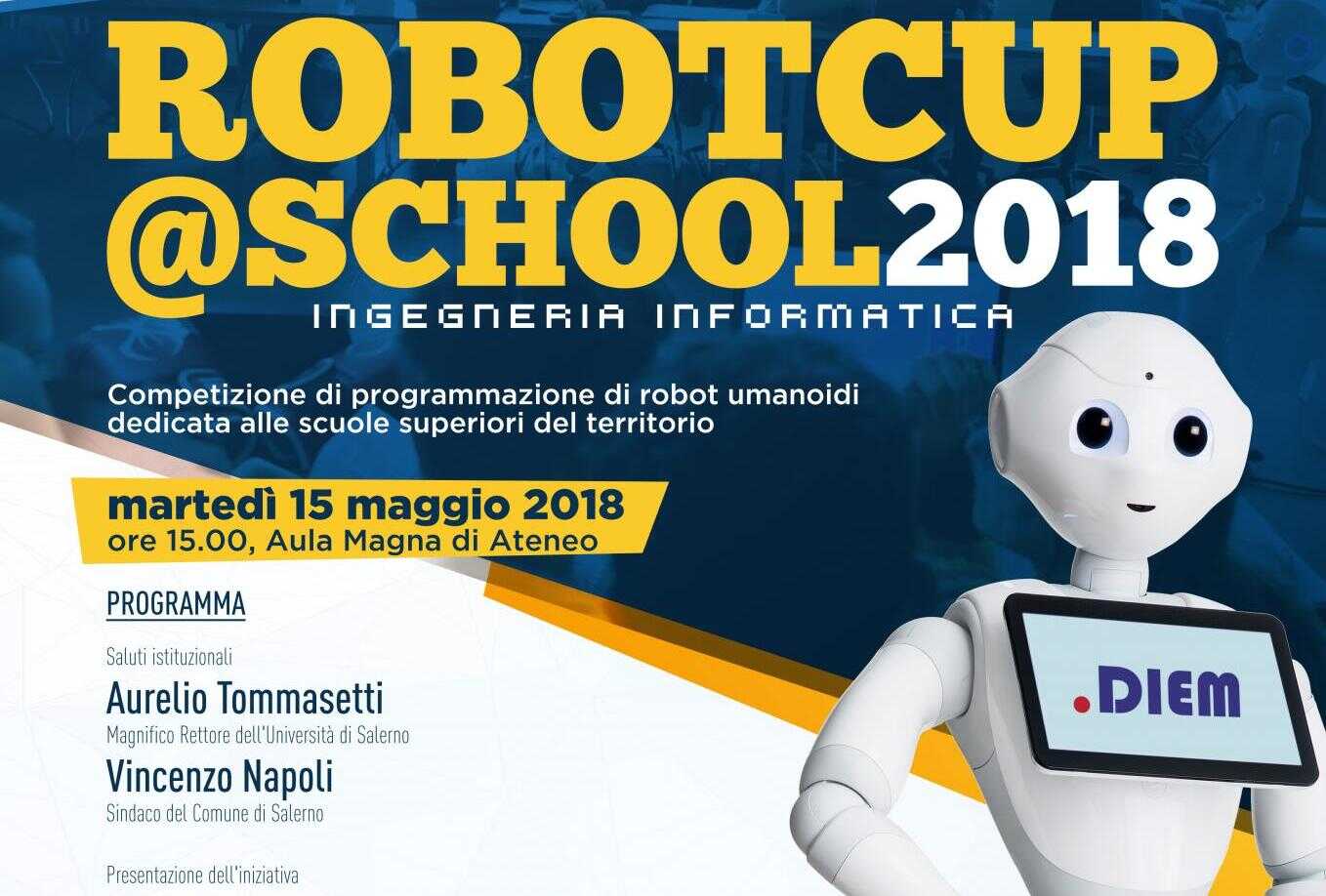 Domani, alle ore 15.00 in Aula Magna di Ateneo, si terrà la RobotCup@School 2018, la competizione di programmazione di robot umanoidi, promossa dal Dipartimento di Ingegneria dell’Informazione ed Elettrica e Matematica Applicata dell’Unisa. L’iniziativa, giunta alla sua seconda edizione, si inquadra nell’ambito dei progetti di alternanza scuola lavoro realizzati dal DIEM e delle attività di orientamento in ingresso per il corso di laurea in Ingegneria Informatica dell’ateneo salernitano.
