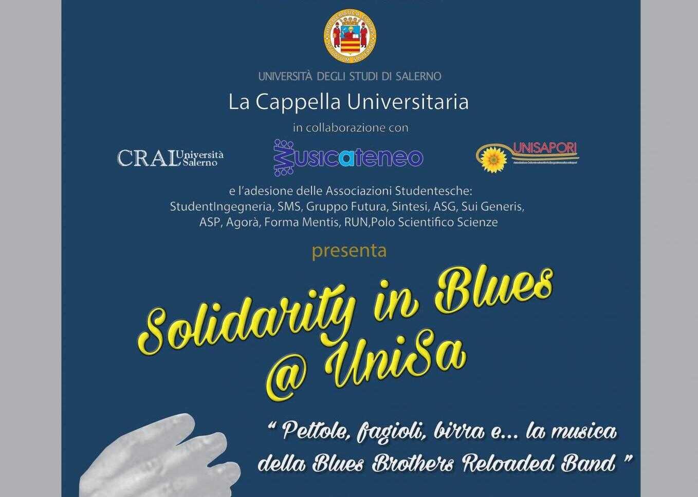 Importante gesto di solidarietà per i bambini siriani in fuga dalla guerra. Mercoledì 12 ottobre, alle ore 19.30, il Teatro di Ateneo ospiterà l’evento “Solidarity in Blues @Unisa”, una serata di beneficenza organizzata dalla Cappella Unisa e rivolta alla comunità di studenti, docenti e personale dell’Università di Salerno. Con un piccolo contributo spontaneo sarà possibile godere di un piacevole ristoro accompagnato dalla performance musicale della Blues Brothers Reloaded Band. L’evento è organizzato in collaborazione con il CRAL dell’Università di Salerno, l’Associazione MusicAteneo, l’Associazione UNISApori e le Associazioni studentesche (StudentIngegneria, SMS, GruppoFutura, Sintesi, ASG, SuiGeneris, ASP, Agorà, FormaMentis, RUN, Polo Scientifico Scienze).
