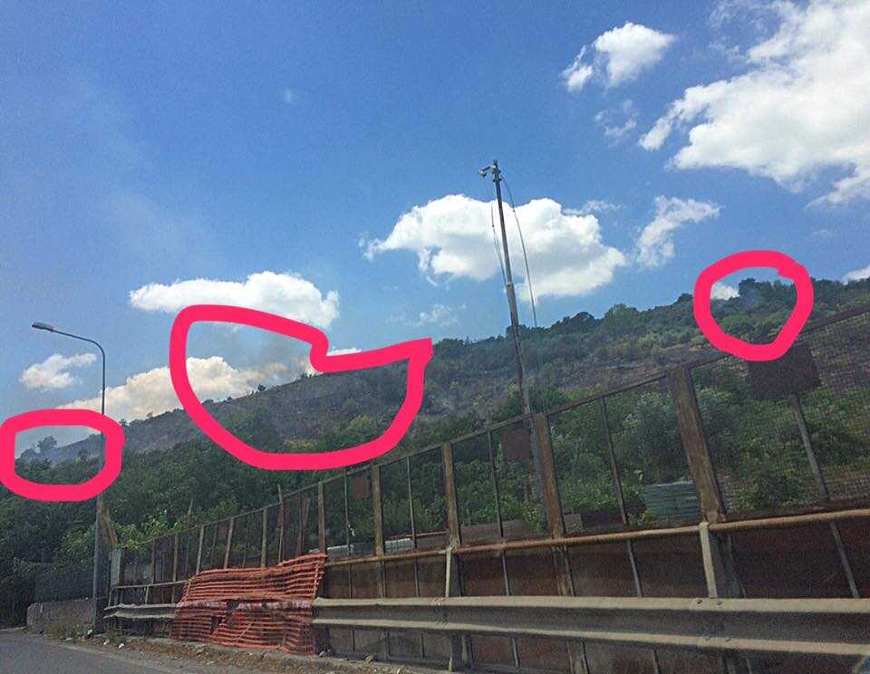 La testimonianza arriva da Facebook da un giovane cittadino del posto, che posta anche una foto con indicazione dei punti esatti: “Oggi tocca al nostro territorio. Numerosi incendi si stanno sviluppando in località Passo dell’Orco, sovrastante Codola, tra la collina di Torricchio, nel territorio di Nocera Inferiore, e la collina di Sant’Apollinare di Castel San Giorgio. Nell’area che si erge sopra la storica Galleria dell’Orco, sono stati appiccati all’incirca una decina di focolai in punti anche distanti tra loro, per cui sarebbe da escludere come al solito la causa naturale”.