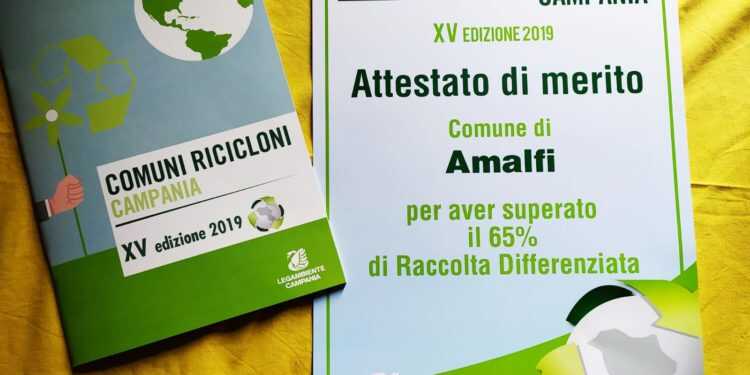Amalfi Comune Riciclone. La città ha ricevuto il riconoscimento di Legambiente Campania per i risultati positivi raggiunti con la raccolta differenziata. Così come accaduto negli ultimi anni, anche per il 2019 si è confermata tra i comuni virtuosi della Regione con una percentuale del 73,66% di differenziata, che supera di molto l’obiettivo di differenziata minima del 65% al cui raggiungimento viene riconosciuto il  titolo di “Comune Riciclone” da Legambiente.