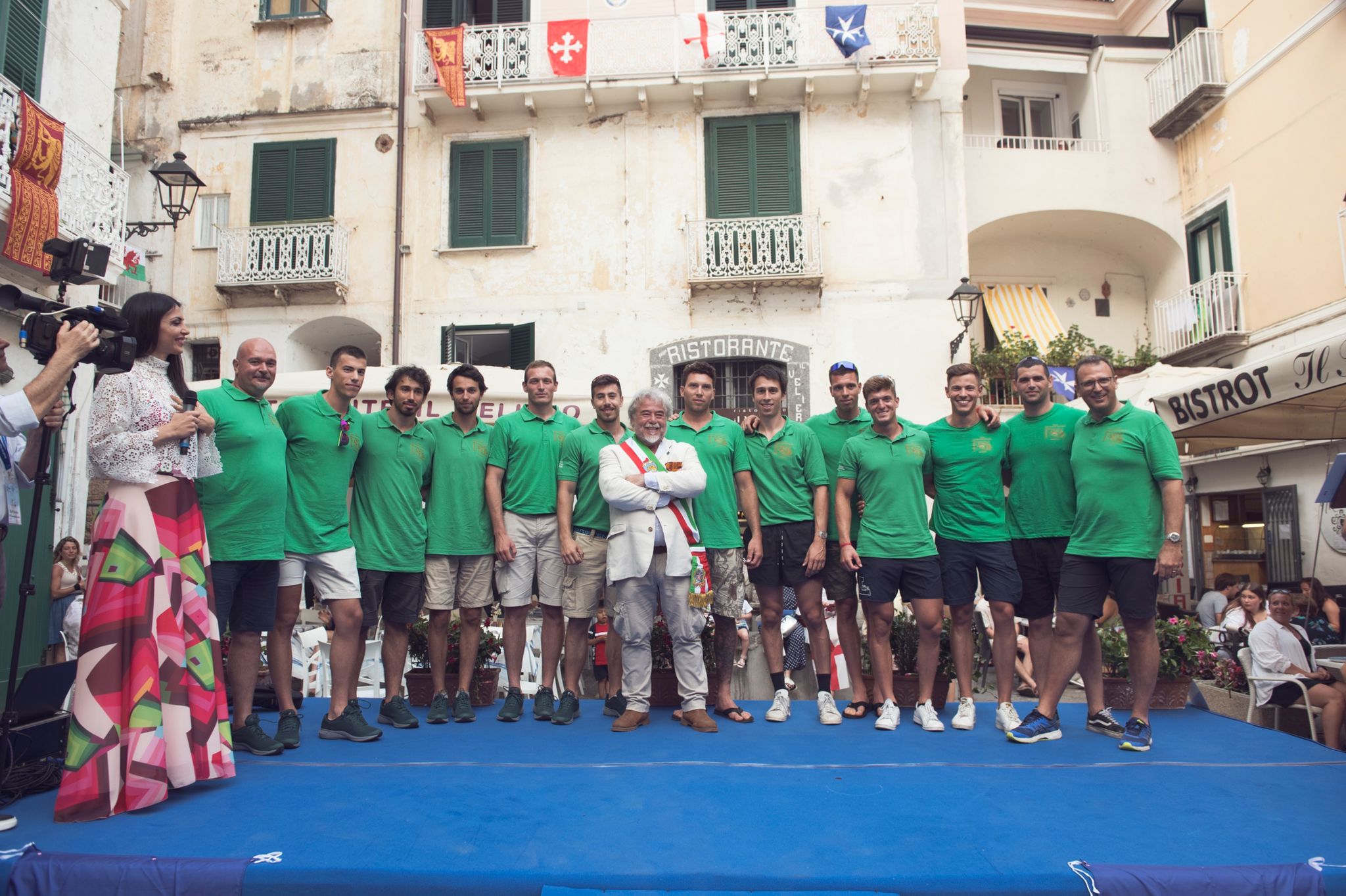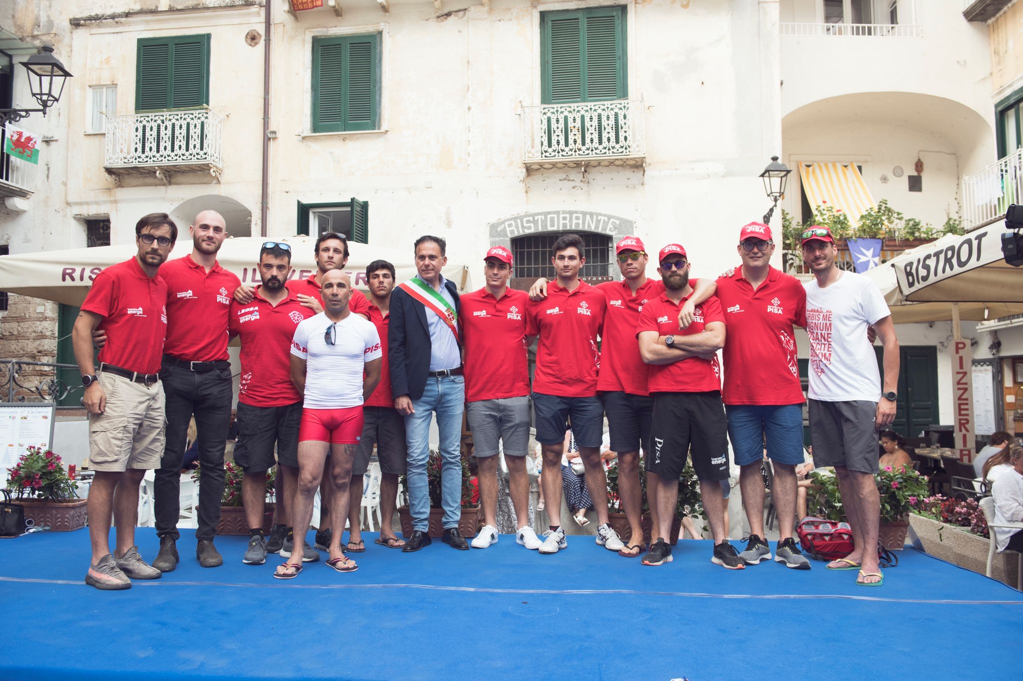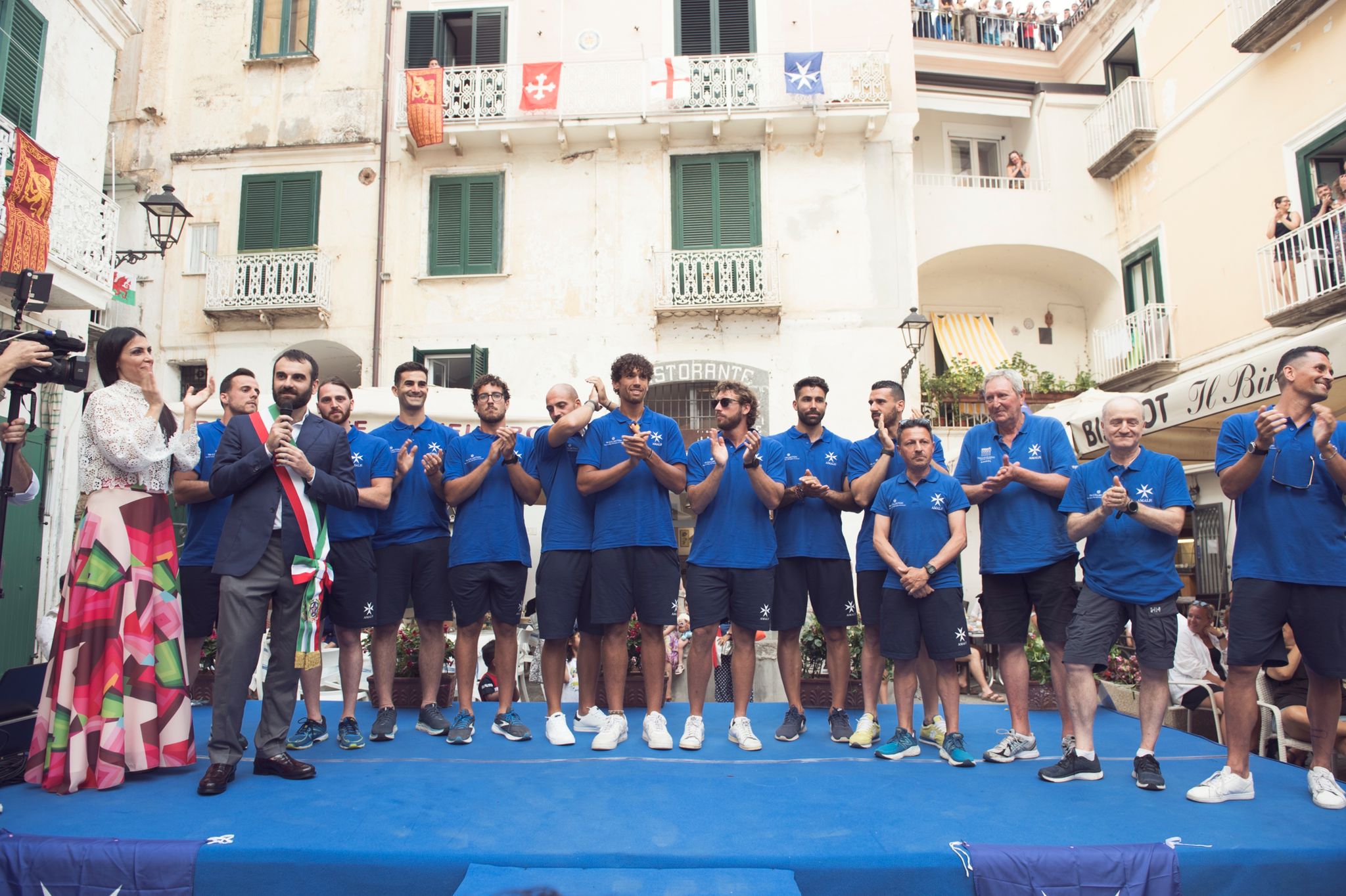 Successivamente la presentazione degli equipaggi alla presenza dei quattro rappresentanti delle Città (il sindaco di Amalfi Daniele Milano, il vicesindaco di Genova Massimo Nicolò, il Sindaco di Pisa Michele Conti, il Consigliere delegato di Venezia Giovanni Giusto) che hanno caricato i propri equipaggi come i migliori motivatori. «In quei pochi minuti di gara il capovoga è ufficialmente il sostituto del Sindaco, sulle sue spalle, nelle sue indicazioni di ritmo e velocità c’è la responsabilità di un’intera collettività», ha detto il Sindaco di Amalfi Daniele Milano davanti ad un tifo da stadio tinto di azzurro, bianco, verde, rosso.