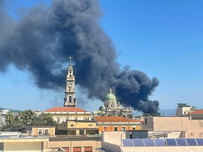 Ancora fumo nero proveniente dalla zona di Pompei: un nuovo vistoso incendio si è divampato tra Boscoreale e Pompei. Le alte fiamme sono visibili anche da Castellammare e zone limitrofe. Non sono ancora chiari i motivi che hanno portato al rogo. A essere avvolto dalle fiamme dovrebbe essere un deposito di tessuti, affianco a Meridional Gas, situato in via Spinelli.