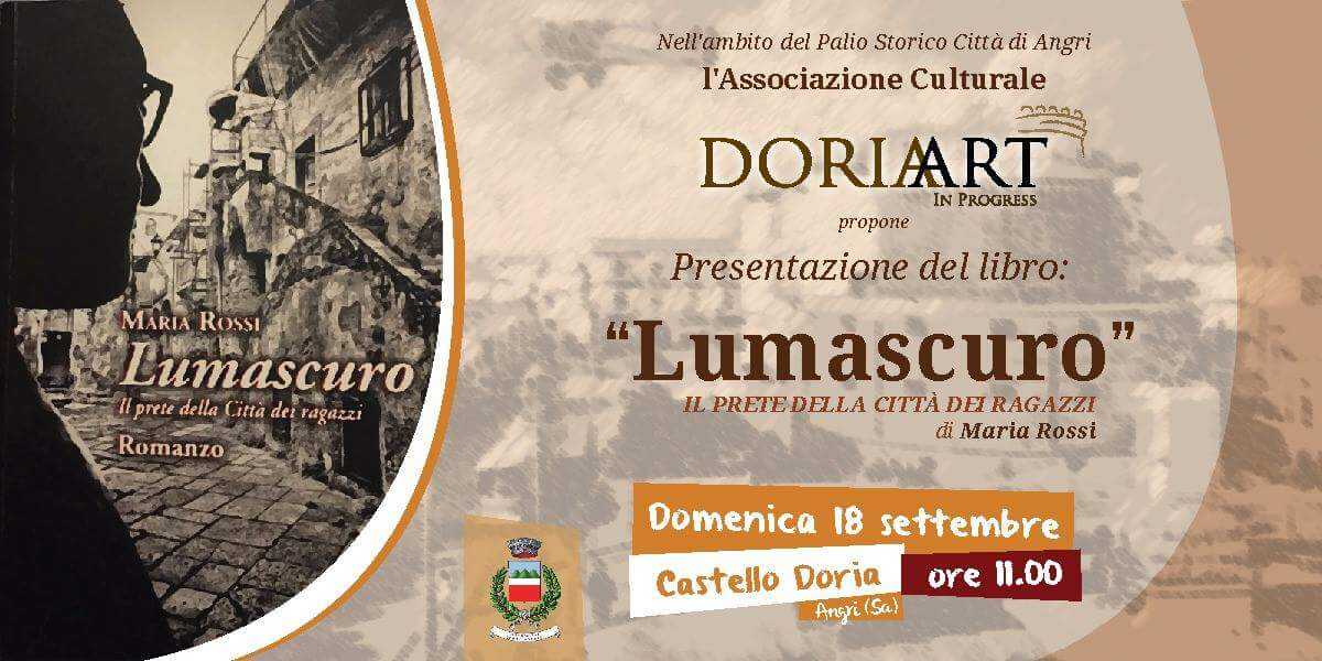 Si è tenuta stamattina nella Sala degli Affreschi del Castello Doria ad Angri (SA) la presentazione del libro “Lumascuro, il prete della città dei ragazzi” di Maria Rossi, Edizione Centro Iniziative Culturali. La presentazione, organizzata dall’associazione culturale DoriaArt in Progress, rientra nell’ambito del Palio Storico Città di Angri. Il romanzo di Maria Rossi illustra il dolore, la forza d’animo, la caparbietà, di quel sacerdote che volle e realizzò il suo sogno chiamato “Città dei ragazzi”.
