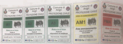 Questa la segnaletica con i codici e gli indirizzi delle aree individuate dal Piano di Protezione Civile comunale: