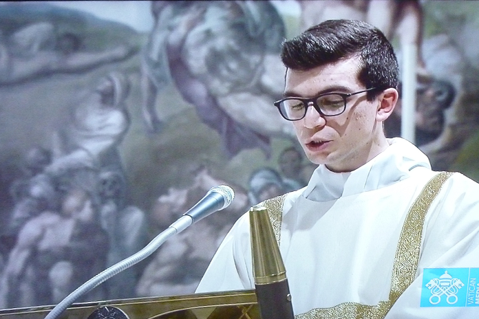 Il diacono angrese, che si prepara a ricevere in questo anno l’Ordinazione presbiterale, ha proclamato il Vangelo e ha assistito nei riti che hanno preceduto e seguito l’infusione dei bambini il cardinale Konrad Krajewski, elemosiniere di Sua Santità che ha concelebrato con il Papa.