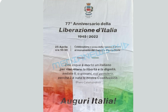 Ancora una tegola sull’amministrazione comunale della città, la condanna giudicata netta dei giorni scorsi riguarda il manifesto affisso che accende l’ennesima discussione sfociate a tratti in sfottò sui social in con cui l’amministrazione ha accompagnato le celebrazioni per il 25 aprile. “In bella mostra il nostro tricolore si trasforma nella bandiera della Costa d’Avorio, che chiaramente richiama all’errore che può sembrare una semplice svista, è per noi un grave errore di comunicazione”. A sollevare la questione e il circolo FdI Giblas di Angri, “peccato che i colori siano stati disposti diversamente mostrando così di fatto colori diversi dai nostri” conclude il portavoce del circolo.