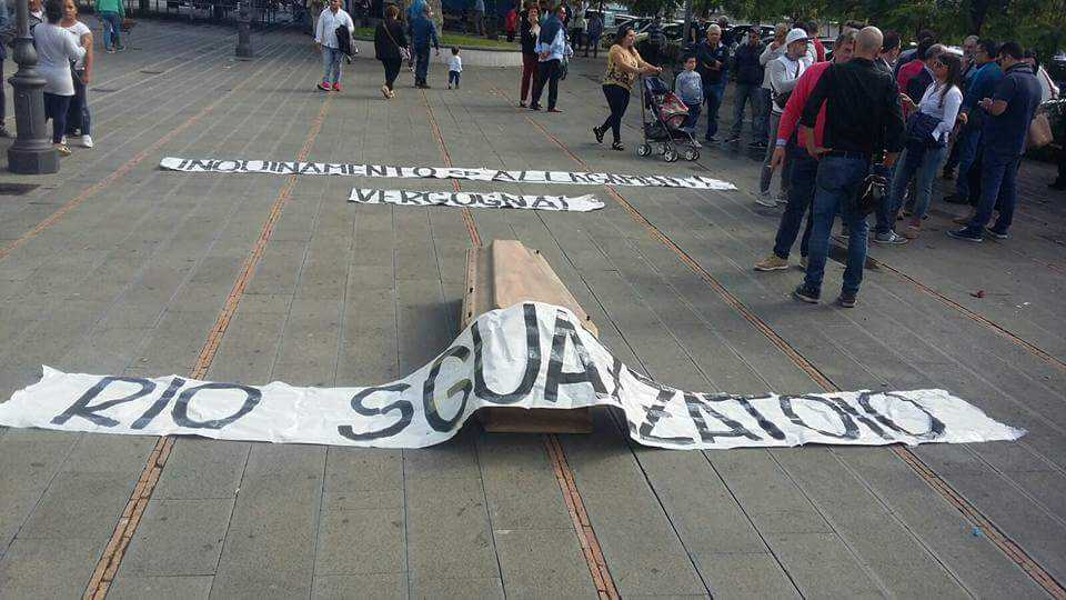«Non abbiamo più parole. Siamo abbandonati. la Regione intervenga immediatamente. Qui, quando piove si allaga subito». C’0è tutta la disperazione in queste parole dei residenti di via Orta Longa che, ieri mattina, hanno inscenato un provocatorio funerale del Rio Sguazzatoio, uno dei canali del fiume Sarno che, come altri corsi d’acqua tracima ad ogni pioggia e alla l’intera zona. Ormai è una costante quella della pioggia-allagamenti, indipendentemente dalla quantità d’acqua che cade. Un problema che interessa anche Scafati e San Marzano sul Sarno, tant’è che ieri mattina, al corteo funebre hanno partecipato, oltre al sindaco angrese Cosimo ferraioli anche i primi cittadini di Scafati, Pasquale Aliberti, e di San Marzano Cosimo Annunziata.