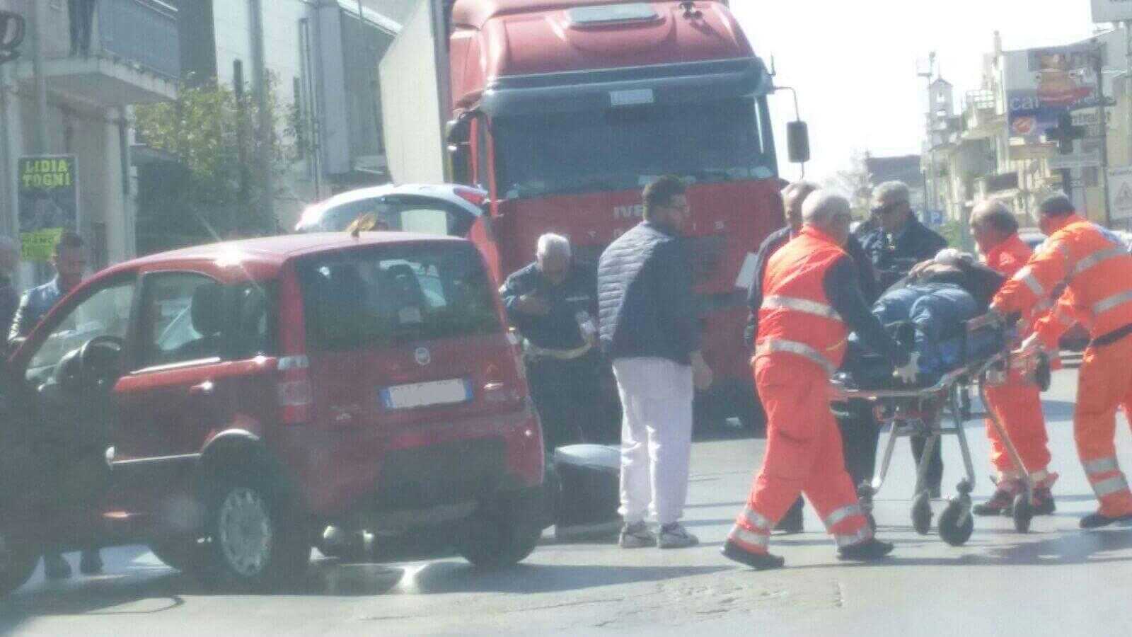 Il centauro è stato portato in ospedale per accertamenti. Illesi i conducenti dell’auto e del tir.