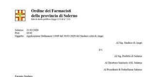 Le lettere Ordine dei Farmacisti e Federfarma Salerno
