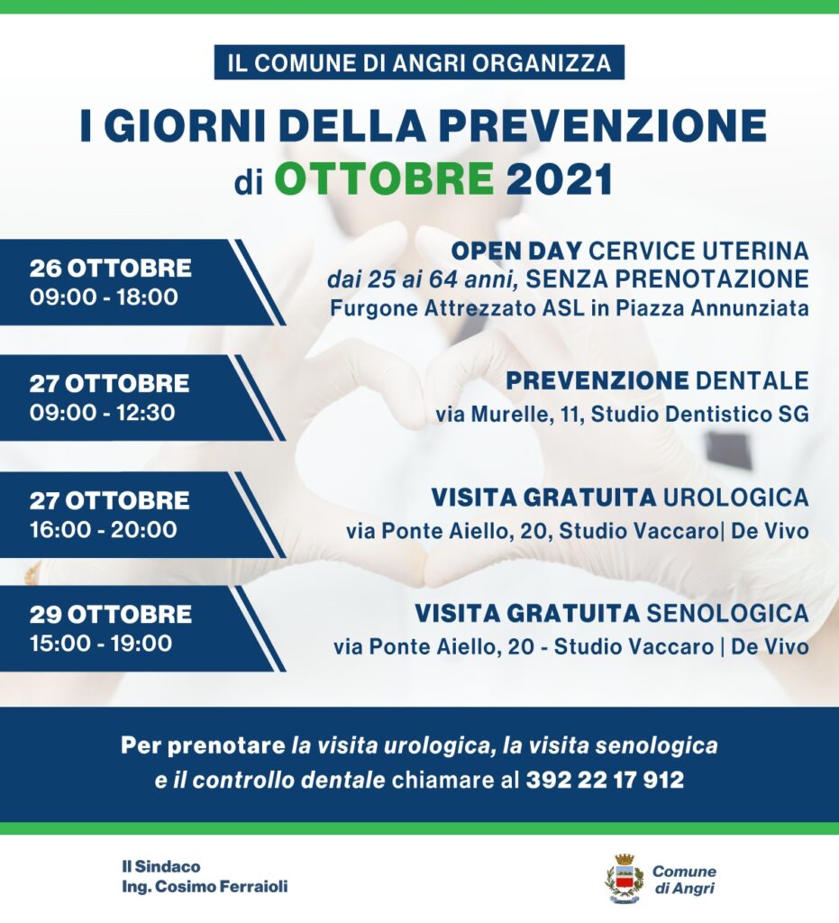 La prevenzione quest’anno assume un’importanza particolare, dopo due anni di stasi dovuti alla pandemia, Angri avrà una serie di iniziative che partono dal 26 al 29 ottobre.