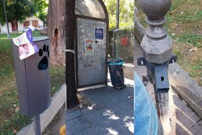 Dopo alcuni giorni dall’istallazione ecco lo scenario che si presenta stamani, posacenere rubati, dog toilette danneggiate e secchi della spazzatura vandalizzati.