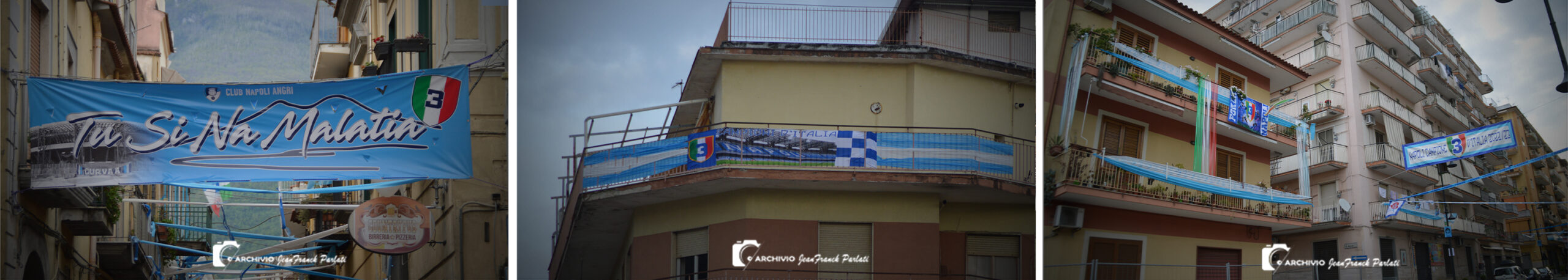 Anche per le strade di Angri è scoppiata la festa del terzo scudetto, stasera alle 20.45 infatti la squadra partenopea potrebbe vincere matematicamente e centrare il suo obiettivo dopo 33 anni contro l’ Udinese.
