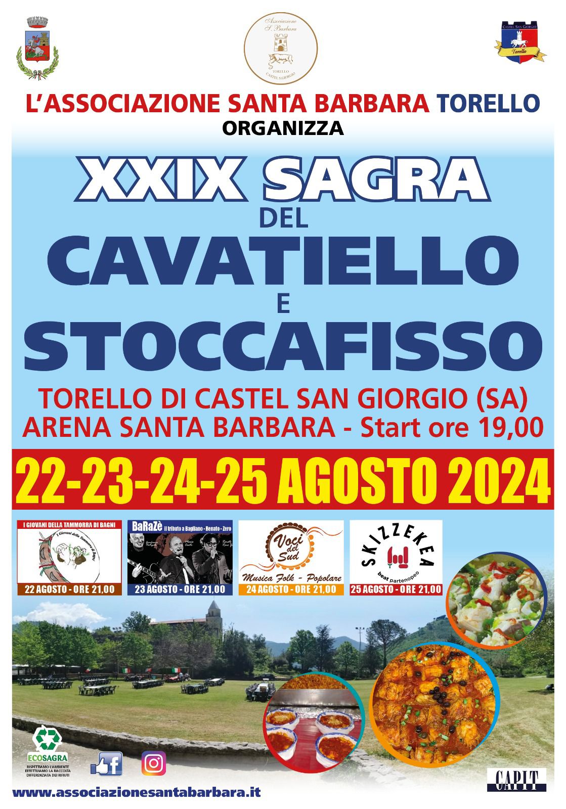 Organizzata dall’associazione Santa Barbara di Torello a Castel San Giorgio. L’evento si terrà dal 22 al 25 agosto prossimi presso l’Arena Santa Barbara, con inizio ogni sera alle 19.