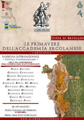 In programma sabato e domenica – 26 e 27 maggio – «Le Primavere dell’Accademia Ercolanese», prima edizione di una rassegna internazionale di pittura contemporanea che cade nel 280° anniversario della scoperta degli Scavi archeologici di Ercolano.