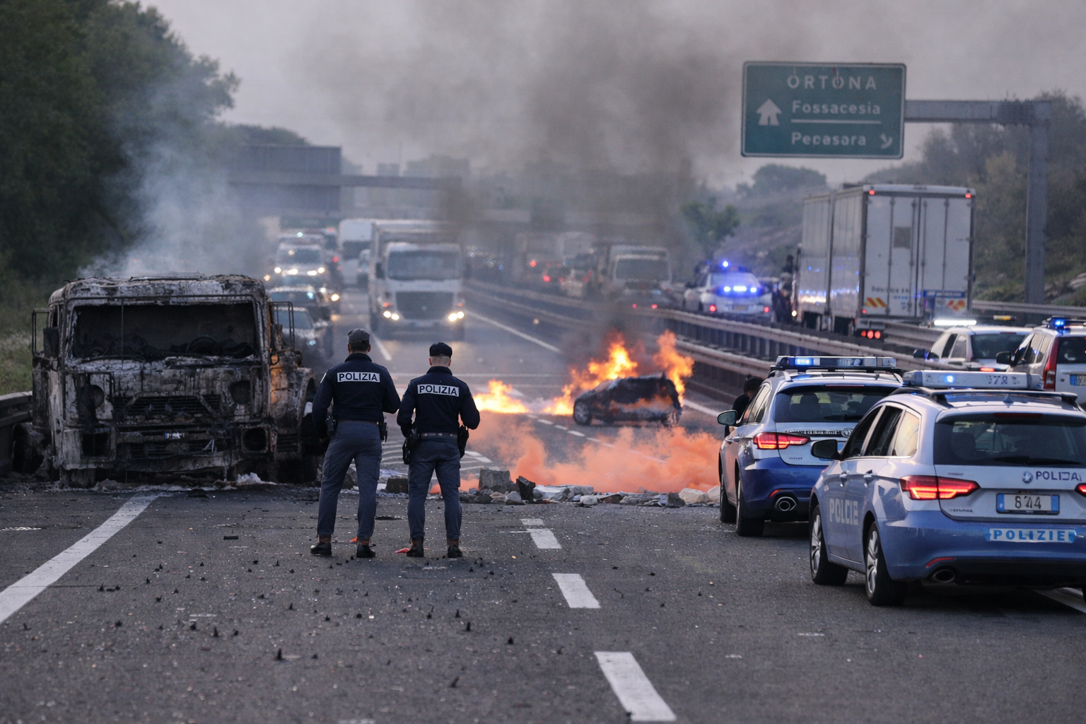 Chiodi e veicoli incendiati per bloccare la carreggiata