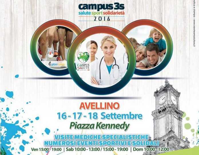 Torna la terza edizione di CampuS3S (Salute – Sport – Solidarietà), il Villaggio della Prevenzione che sarà allestito in Piazza Kennedy ad Avellino. L’iniziativa riproporrà un “Ospedale da Campo” e vedrà il coinvolgimento di numerose attività medico-scientifiche dedicate principalmente alle fasce sociali meno abbienti. In particolare il Villaggio sarà fruibile nei giorni di venerdì 16 settembre dalle 15.00 alle 19.00, sabato 17 settembre dalle ore 10.00 alle 13.00 e dalle ore 15.00 alle ore 19.00 e nella giornata di domenica 18 settembre solo di mattina dalle ore 10,00 alle ore 12.00.