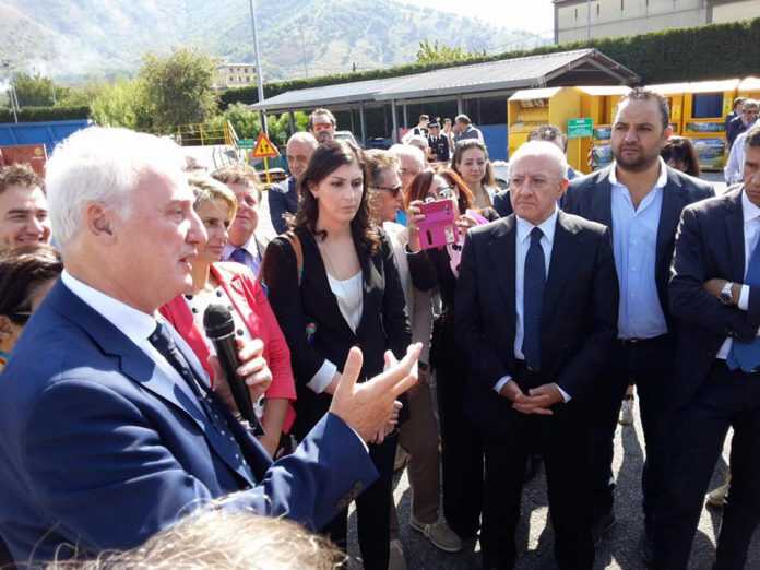 Il Presidente De Luca in visita a Baronissi. Dopo il saluto ai Sindaci e agli Amministratori a Palazzo di Città, il Presidente ha inaugurato ieri mattina l’area della ex discarica di Cariti che è stata bonificata, con risorse europee, dopo oltre trenta anni di attesa. Il presidente ha visitato, poi, la isola ecologica di Sava elogiando i grandi risultati ottenuti per il perfetto funzionamento dell’impianto e per la percentuale di raccolta differenziata (80,86) che fa di Baronissi città leader in Italia. Tutti hanno sottolineato il grande senso civico e di appartenenza della intera cittadinanza che ha consentito il raggiungimento di risultati invidiabili.