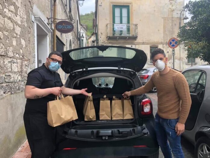 Nel giorno della Santa Pasqua l’Osteria di Re Baccalà e l’Associazione ContrariaMente Baronissi hanno portato un sorriso e i loro auguri alle persone anziane sole e in difficoltà a causa del Covid 19. Un’iniziativa solidale per condividere insieme un giorno di festa e di speranza in un momento così difficile, in cui le norme impongono un isolamento forzato. Il pranzo donato è stato preparato secondo le tradizioni locali: lasagna al ragù, salsicce, polpettone al forno con patate profumate e colomba. Le pietanze sono stata elaborate dallo chef e da tutto lo staff dell’Osteria Re Baccalà nel rispetto delle regole anti Covid e distribuite dai volontari dell’Associazione Contrariamente Baronissi.