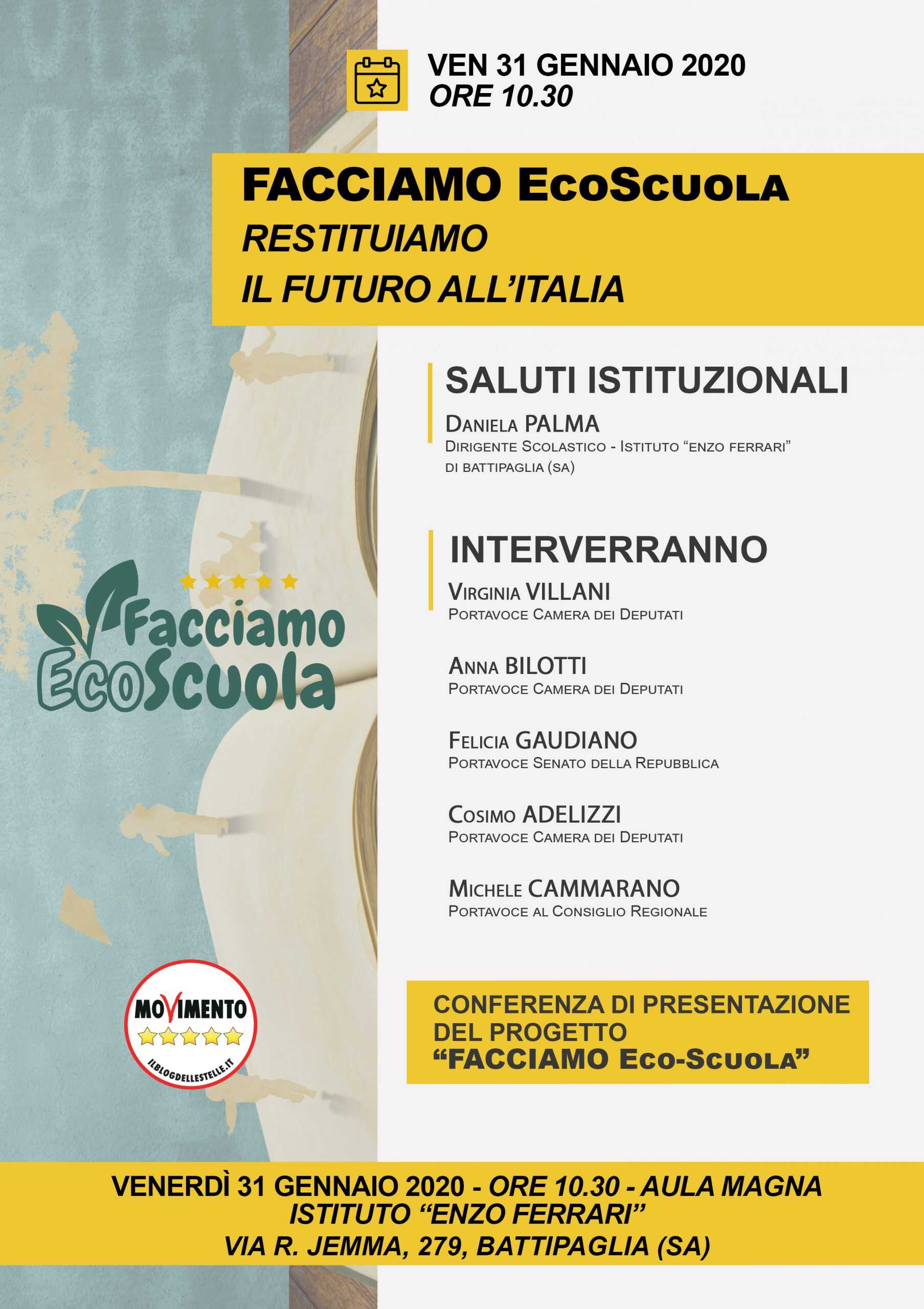 E’ partita la terza edizione di “Facciamo Scuola”, l’iniziativa promossa dai portavoce del Movimento 5 Stelle. L’iniziativa sarà presentata VENERDI’ 31 GENNAIO 2020 alle ore 10,30 presso l’Aula Magna dell’Istituto di Istruzione Superiore “Enzo Ferrari” di Battipaglia (SA).