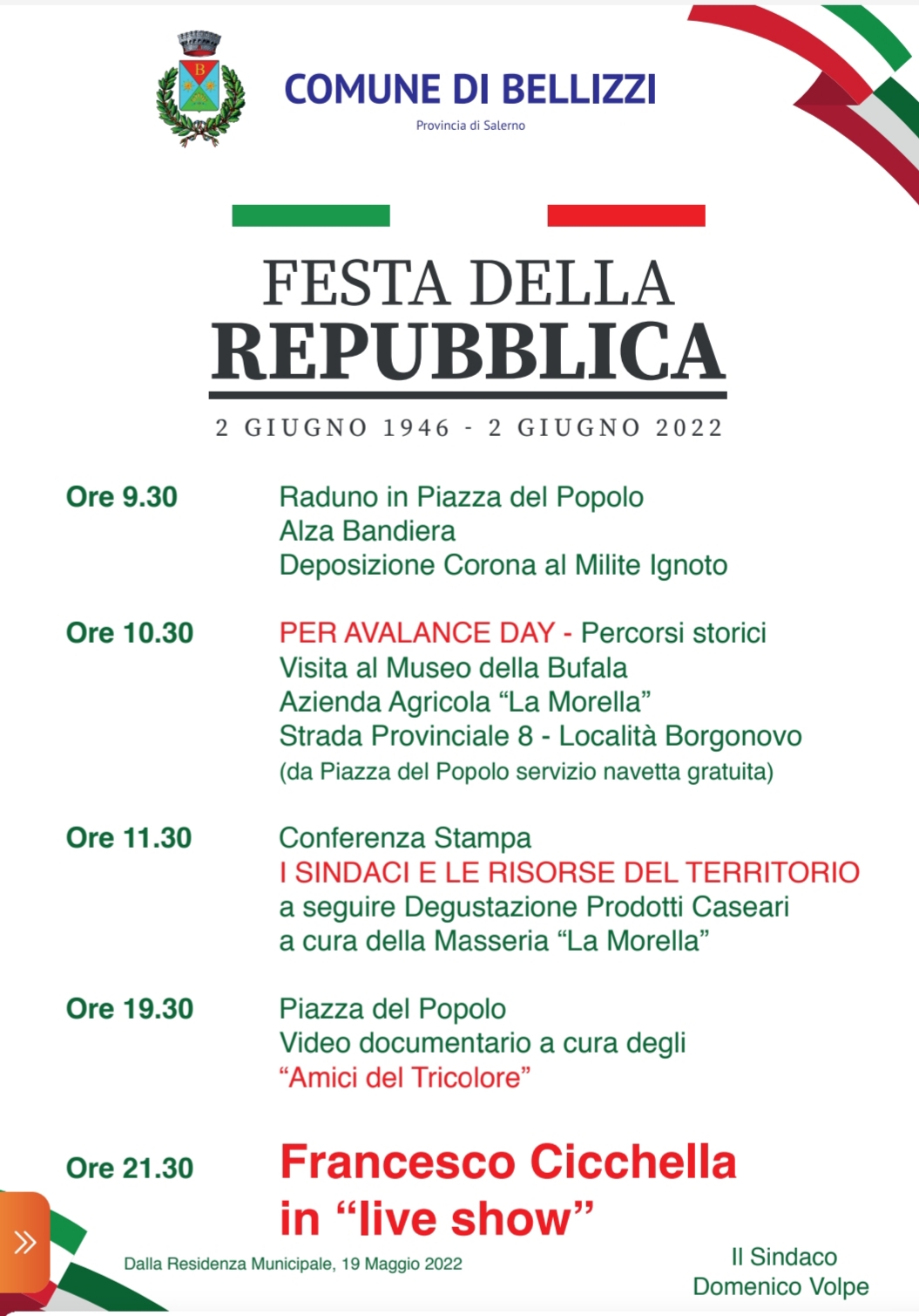 Secondo appuntamento con l’Avalanche Day – progetto finanziato dalla Regione Campania Poc 2014/2020 che coinvolge i comuni di Bellizzi, Acerno, Battipaglia, Eboli, Montecorvino Pugliano e Olevano sul Tusciano – in occasione della festa della Repubblica.