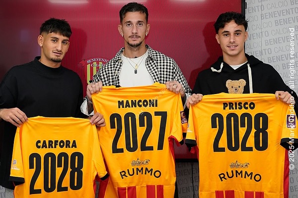Accanto a lui, anche Carfora e Prisco, due giovani di prospettiva cresciuti nel vivaio sannita, che rappresentano il futuro del Benevento. Il club continua così a intrecciare esperienza e gioventù, puntando su un mix di talento, entusiasmo e senso di appartenenza.