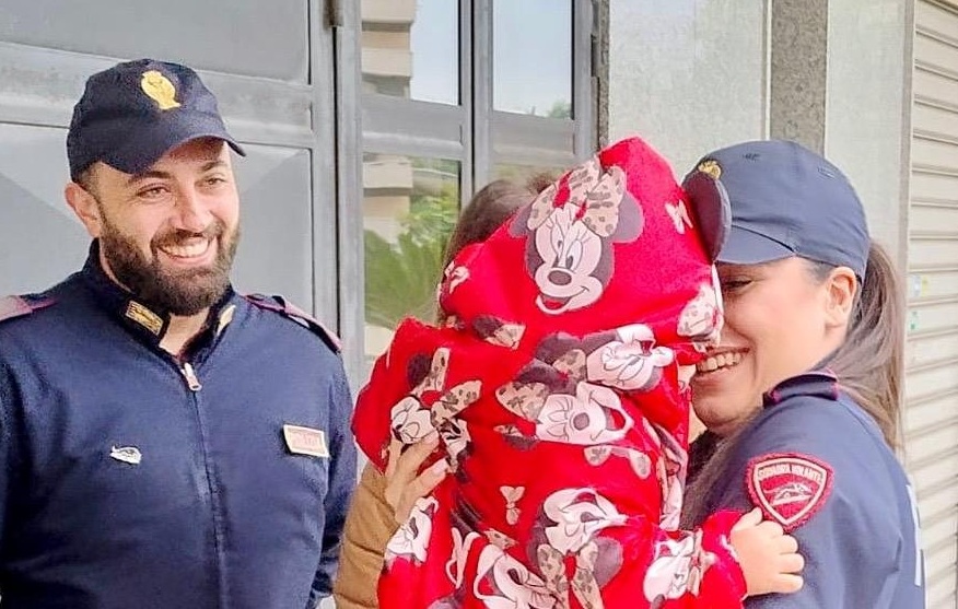 Grazie al loro intervento tempestivo, in meno di tre minuti la bambina è arrivata al pronto soccorso, dove i medici sono riusciti a liberarle le vie respiratorie e a stabilizzarla. Un finale felice per una vicenda che avrebbe potuto trasformarsi in tragedia. I genitori, visibilmente commossi, hanno ringraziato gli agenti con un lungo abbraccio carico di emozione e riconoscenza.