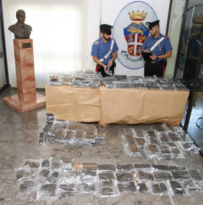 * 134 kilogrammi di sostanza stupefacente di tipo hashish suddivisi in 1.363 panetti da 98 grammi ciascuno;