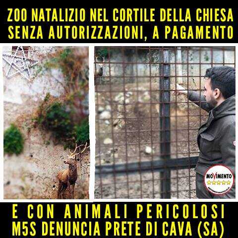 Ritornano i “blitz” nel salernitano dell’onorevole Paolo Bernini del Movimento Cinque Stelle. Sotto la scure del grillino questa volta è finito il Santuario Francescano di Cava de’ Tirreni. “Nel Santuario di Cava de Tirreni – scrive Bernini – il prete responsabile della struttura detiene in cortile ed espone illegittimamente un cervo, una civetta delle nevi, due lama, tre pavoni, conigli, colombe, galline e una capra. Con sconcerto, durante un blitz con i Carabinieri e Alfredo Riccio delegato della Lega Nazionale Per La Difesa Del Cane, abbiamo scoperto che il prete del Santuario , senza alcuna autorizzazione né sanitaria né prefettizia, necessarie per la detenzione del cervo, della civetta delle nevi e degli animali domestici, ha di fatto aperto al pubblico uno zoo con tanto d’ingresso a pagamento con offerta minima di 1 euro”.