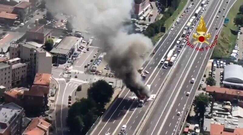 Uno scontro fra tre camion, due dei quali andati a fuoco è avvenuto a Borgo Panigale, a Bologna, a pochi metri dall’incendio che fece crollare un ponte il 6 agosto dell’anno scorso. Sul posto si è alzata una colonna di fumo visibile anche da lontano. Nello scontro è rimasto vittima l’autista di uno dei camion.