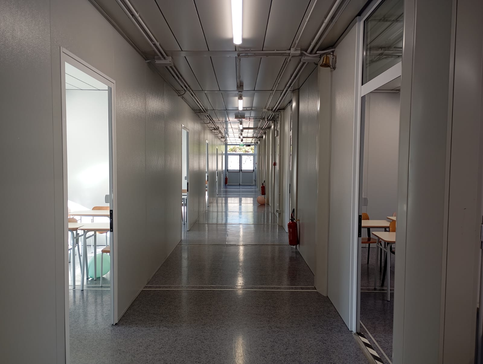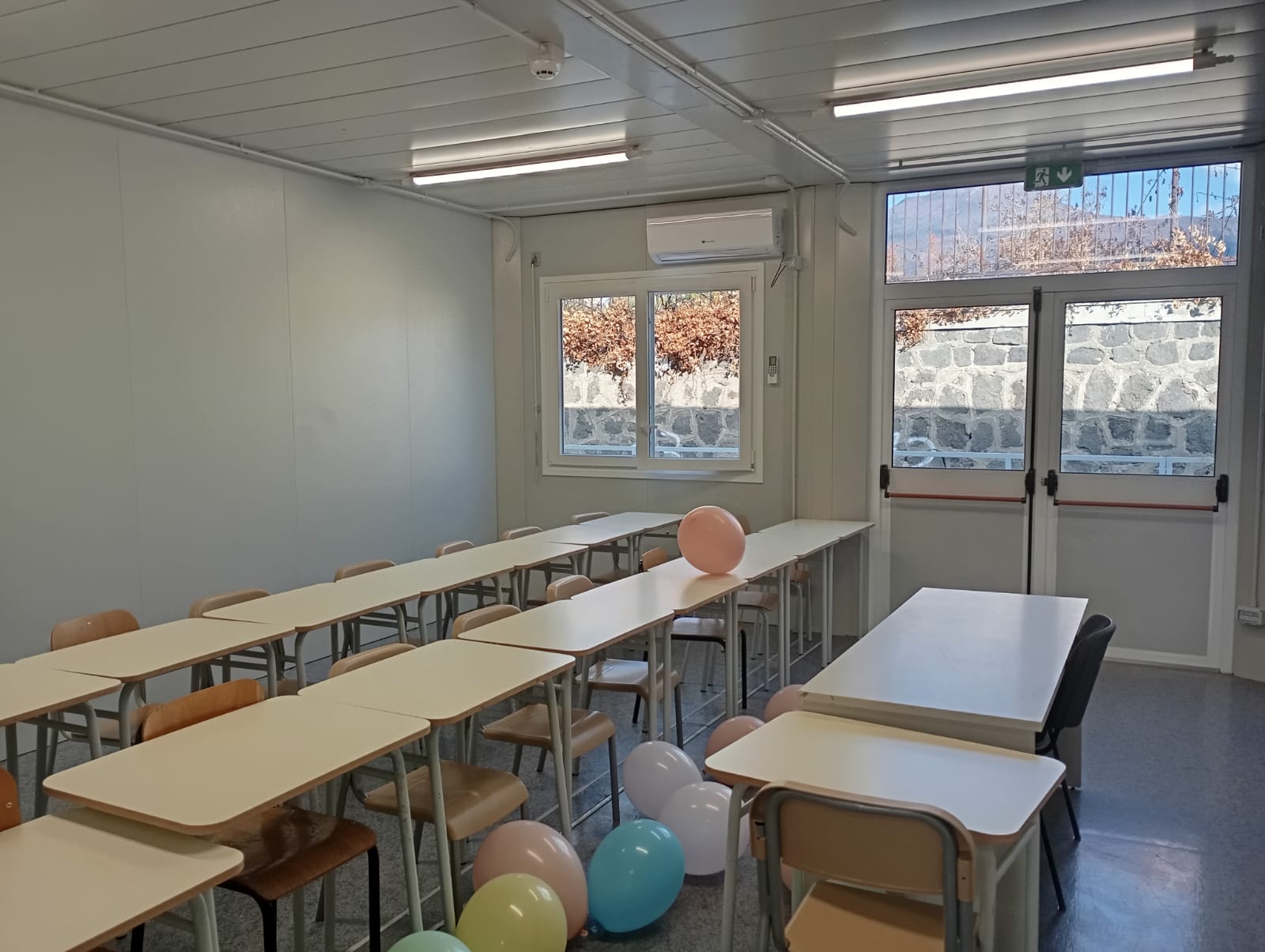 La nuova struttura dispone di aule dotate di rivestimenti ignifughi, bagni separati per maschi e femmine, un’aula insegnanti e uno spazio per il sostegno. Ogni porta antipanico è dotata di un allarme che suona in caso di tentativo di fuga. Mancano ancora i complementi di arredo e a giorni verranno installate le Lim ma del resto tutto è funzionale. I bambini hanno voluto lasciare dei brevi messaggi in ricordo della loro vecchia scuola di Santa Maria Salome, prima di varcare con entusiasmo e gioia le porte della loro nuova scuola.