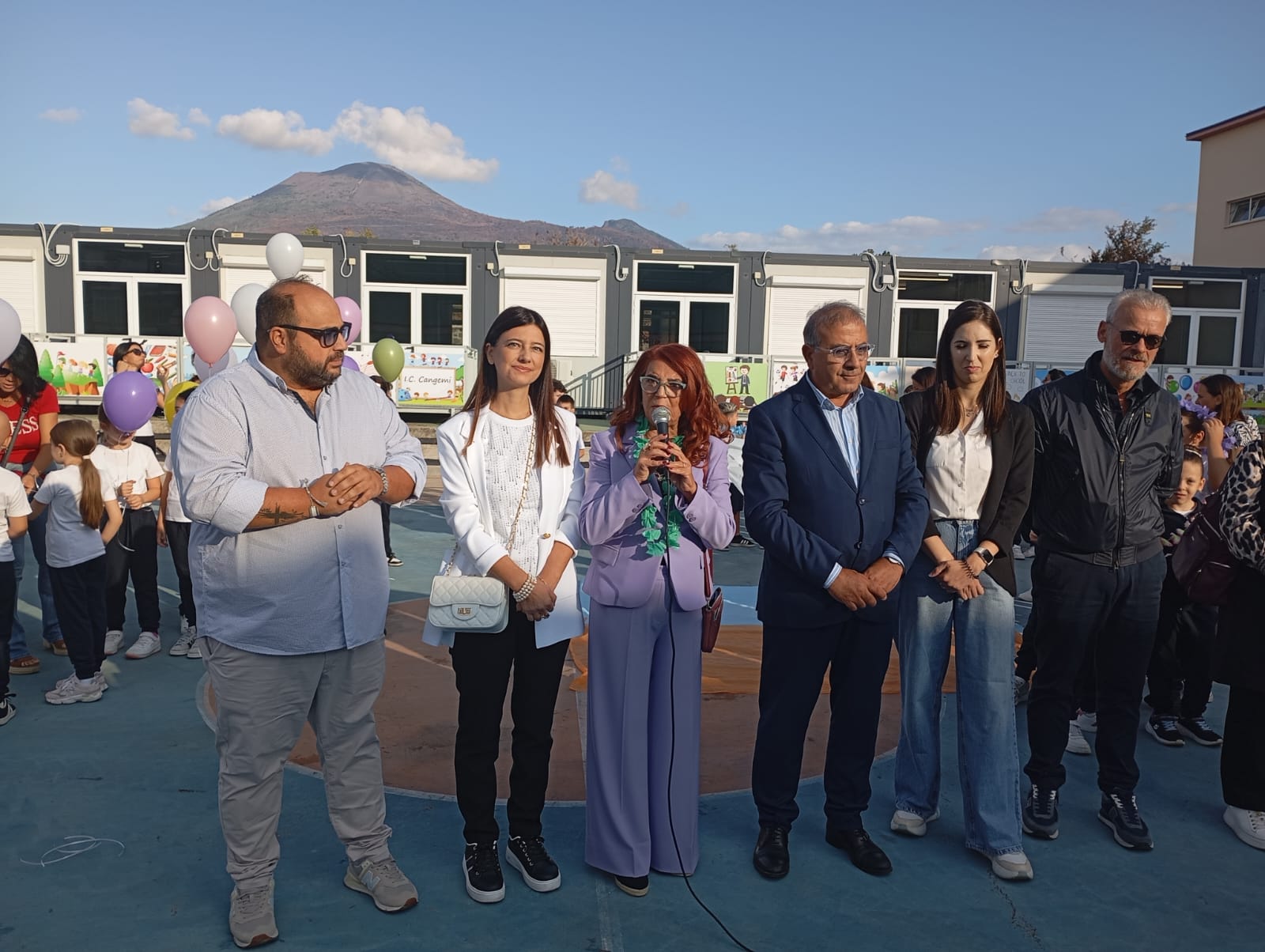 Mattinata di festa a Boscoreale, dove oggi sono state inaugurate le nuove aule destinate ai bambini della scuola primaria e dell’infanzia di Santa Maria Salome. Nello spazio alle spalle dell’Istituto Cangemi, nove spazi moderni ed efficienti accolgono i piccoli alunni della scuola primaria accompagnati da animatori, palloncini colorati e dal canto dell’Inno di Mameli che ha scandito l’inizio della nuova avventura scolastica.